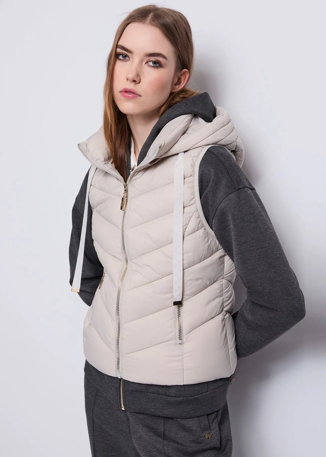 Scegli il gilet in nylon imbottito trapuntato con cappuccio e tasche con zip. Ideale da indossare come strato extra.
