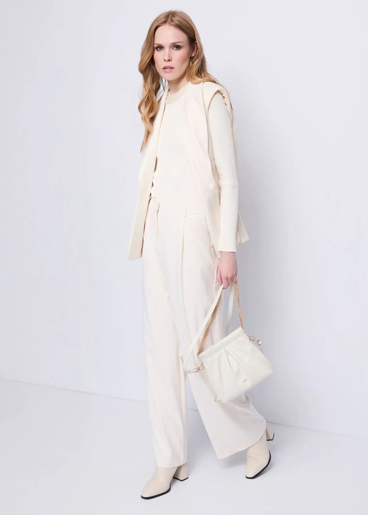 Scegli il gilet in misto viscosa elasticizzata con collo a revers e bottone dorato. Design sartoriale per una raffinata eleganza senza tempo.