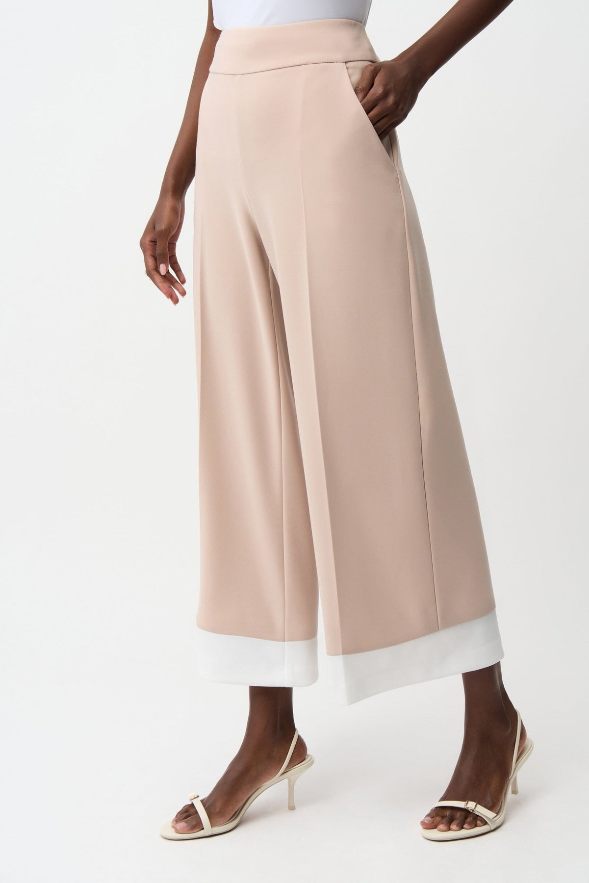 Joseph Ribkoff Pantaloni culotte pull-on in maglia effetto seta con profili a contrasto