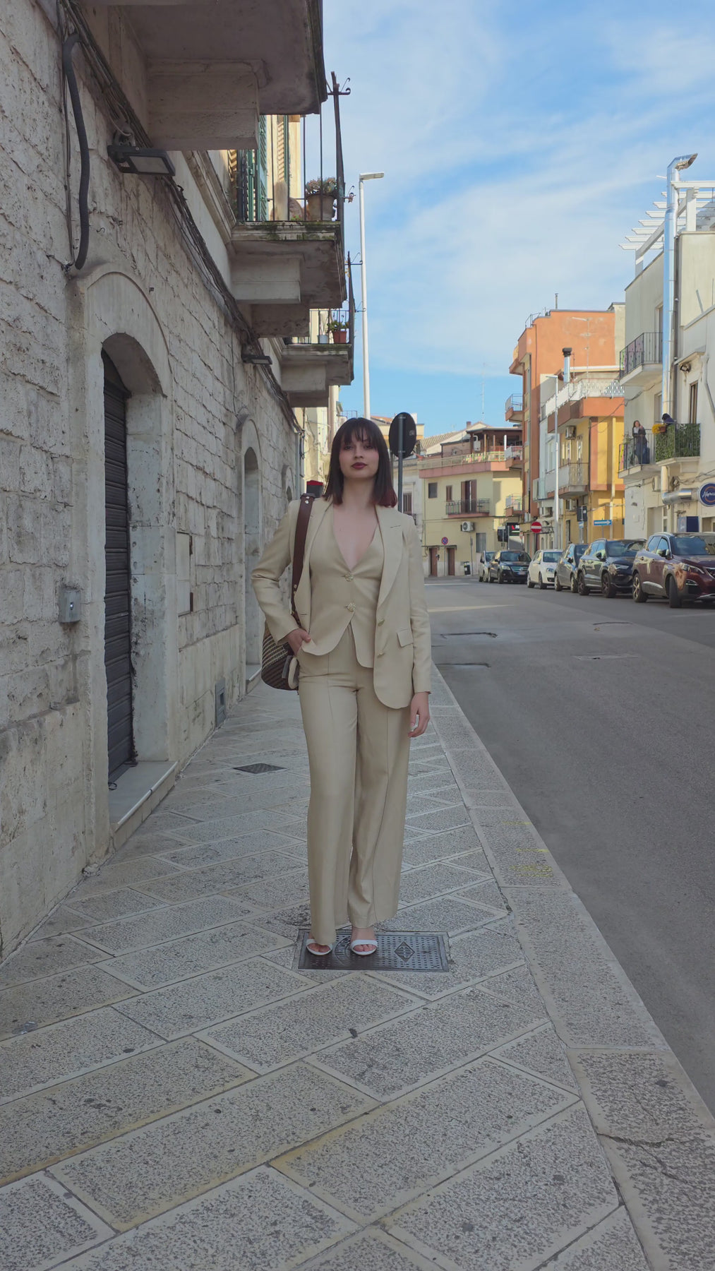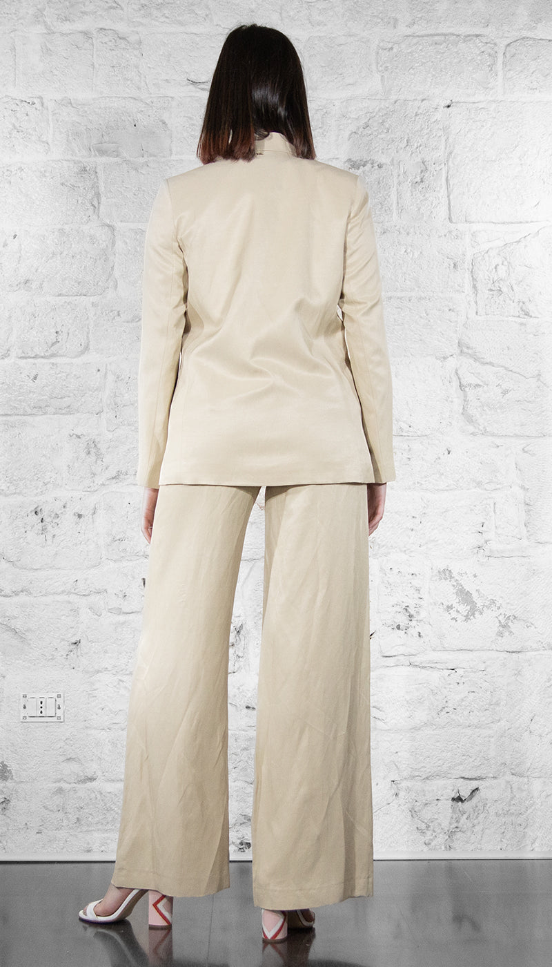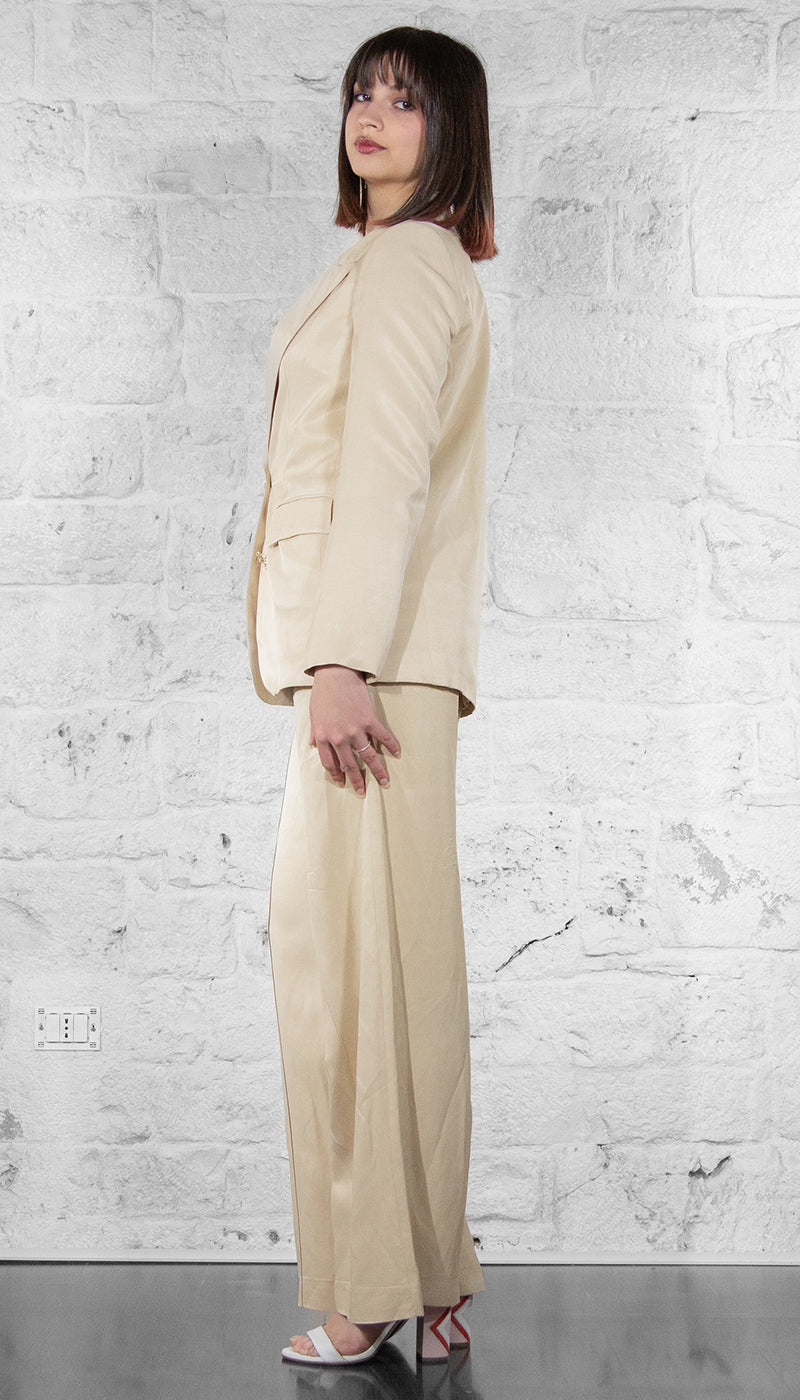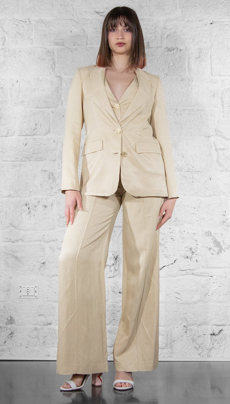 Scegli il blazer in misto viscosa e lino con revers classico e tasche con patta, pantalone palazzo