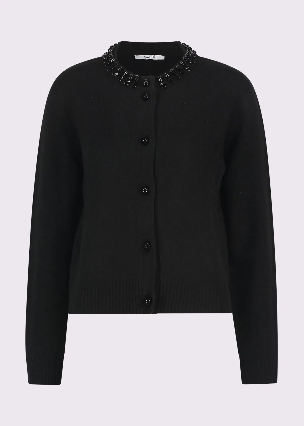 Gaudi Cardigan nero da donna con perle e strass Maglie e cardigan Donna - Boutique Luisa Trendy
