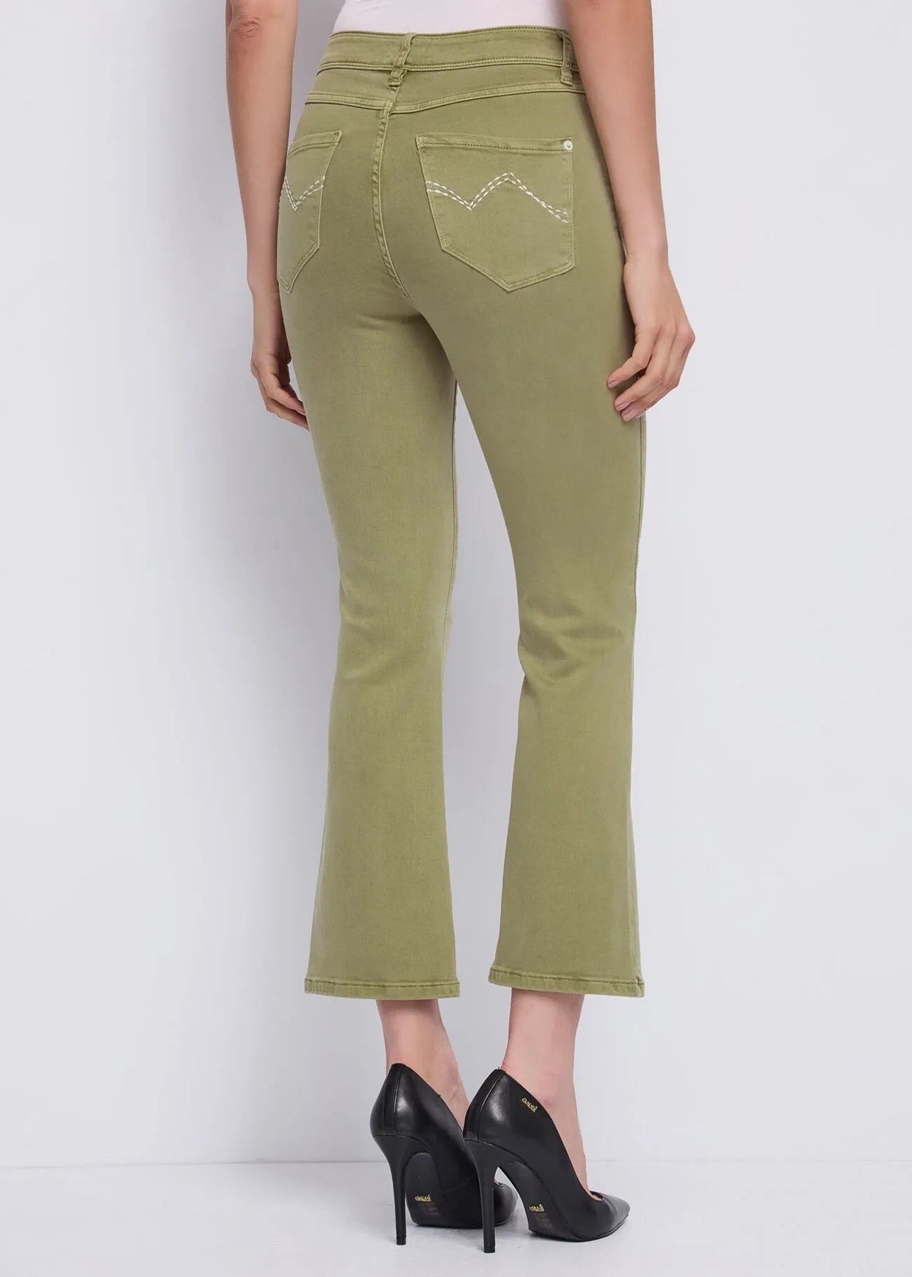 Scegli i pantaloni Gaudi Jeans flare cropped in misto cotone elasticizzato con cuciture a contrasto. Modello cinque tasche per un look che valorizza la silhouette.