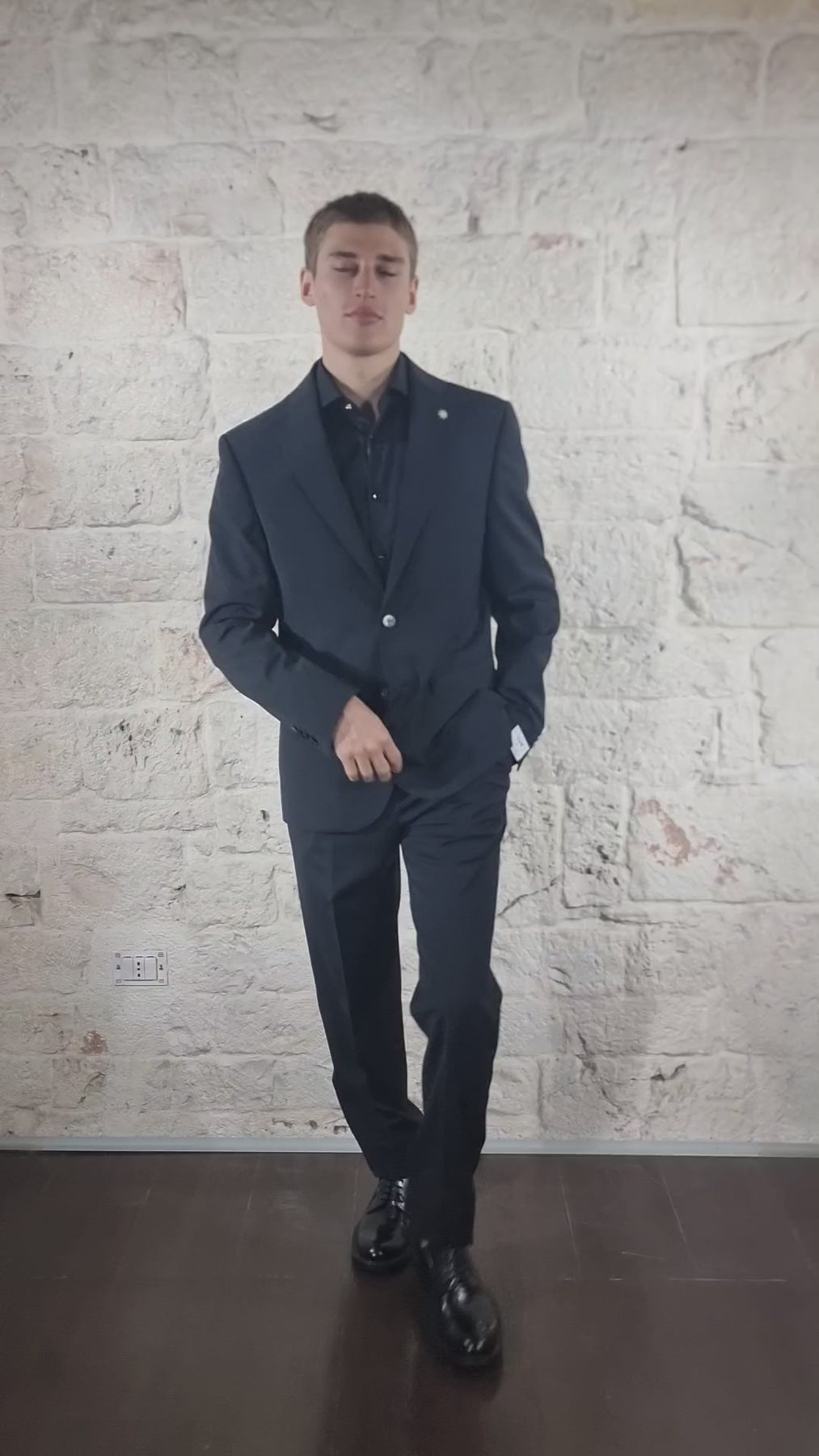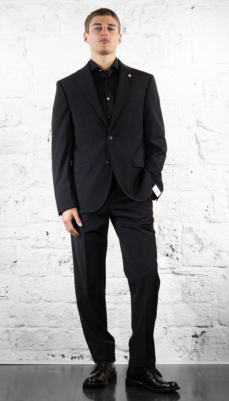 Manuel Ritz Abito nero misto lana modello drop 8 slim fit