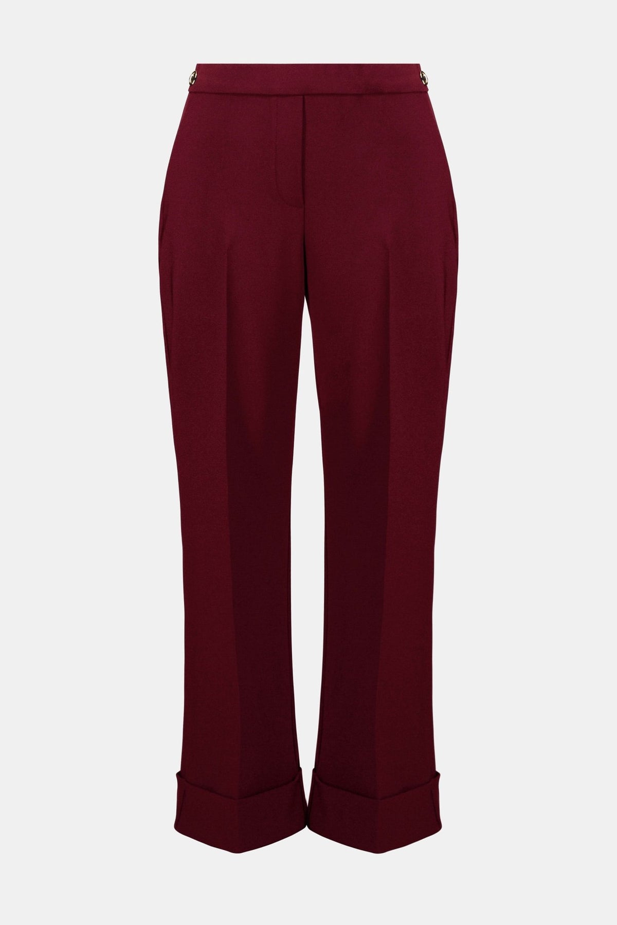 Aggiungi un tocco di semplice sofisticatezza a qualsiasi look con questi bellissimi pantaloni pull-on. Realizzato in un ricco tessuto twill, il design presenta un'elegante silhouette svasata che abbraccia la perfezione qualsiasi figura. Tasche finte e una finta patta con dettagli in crinolina dorata aggiungono raffinatezza al capo.