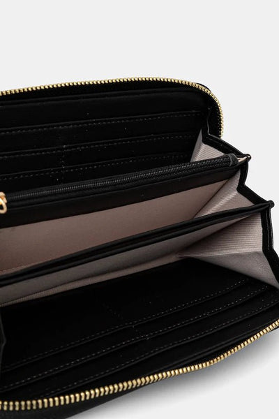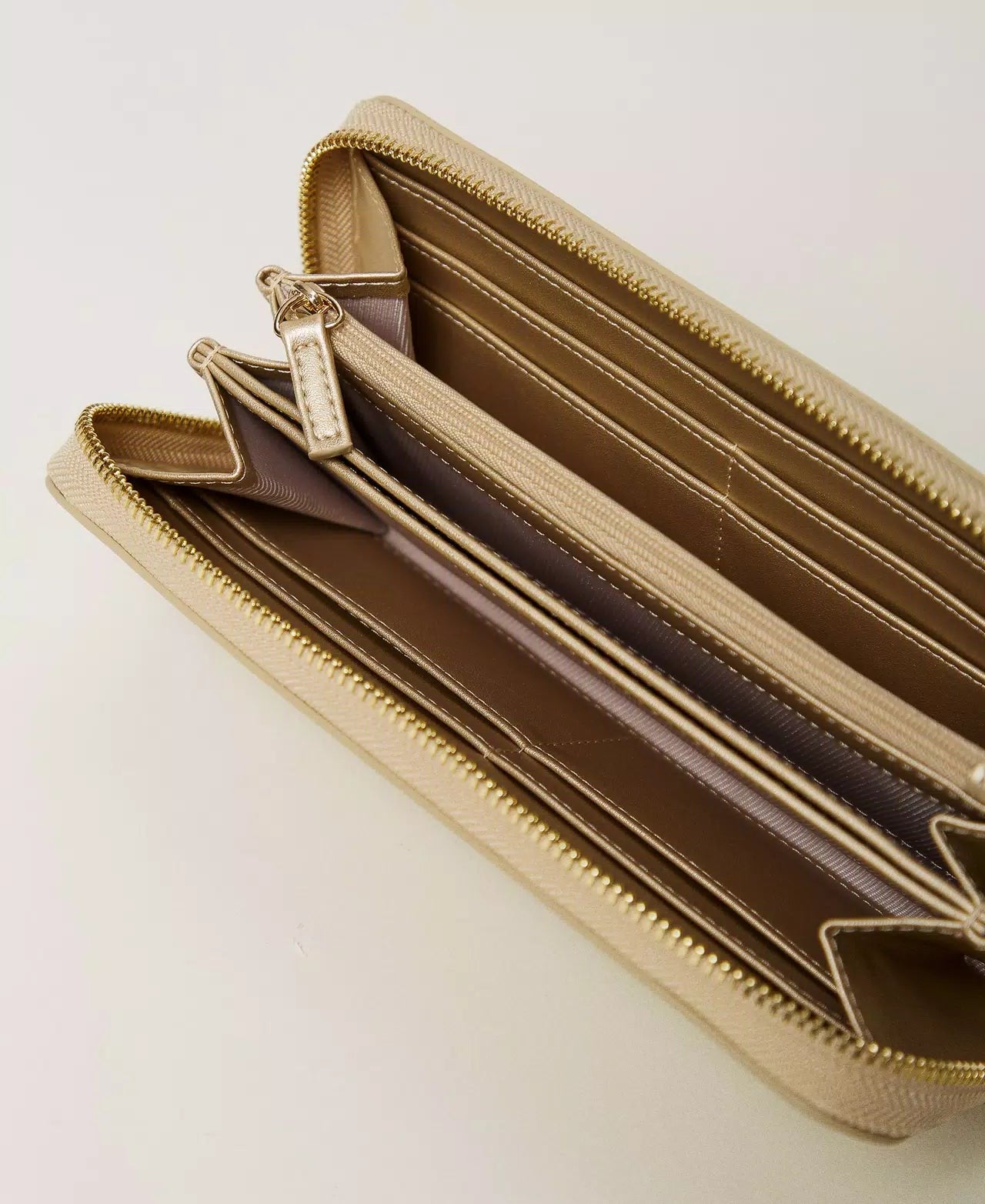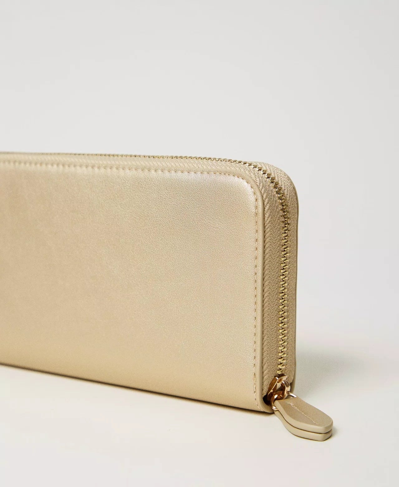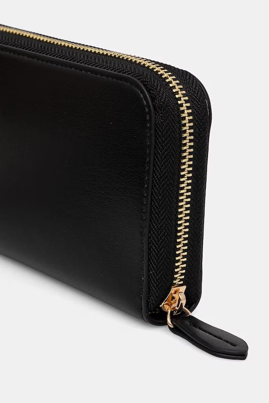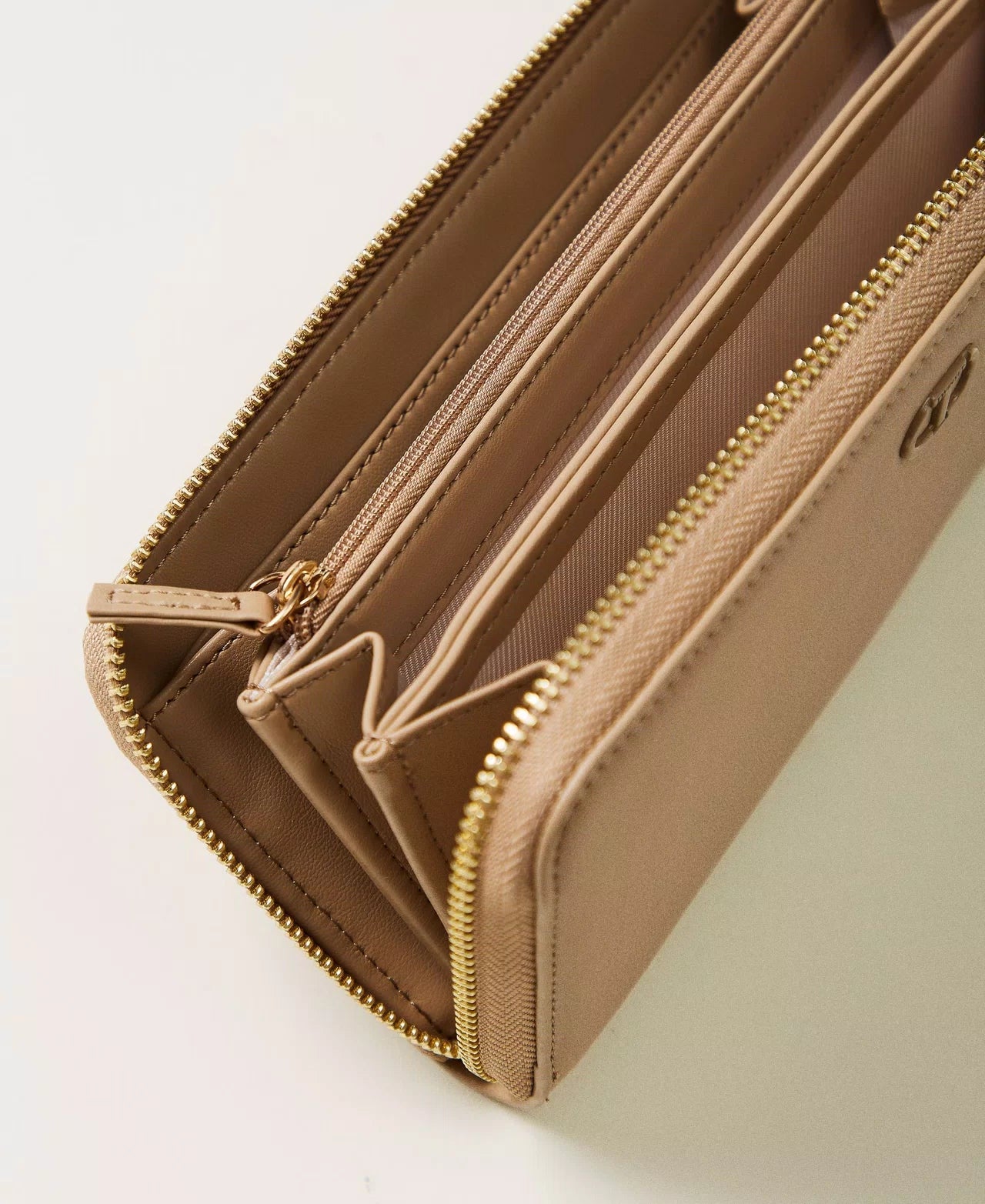 Portafoglio zip around effetto pelle liscia di vitello con triplo comparto interno a soffietto e logo Oval T davanti.